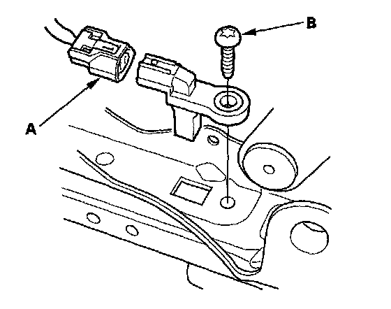 1. Install the driver's seat position sensor with a TORX bolt (A), then connect the seat position sensor harness 2P connector to the driver's seat position sensor (B).