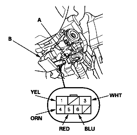 4. Disconnect the 7P connector (A) from the ignition switch (B).