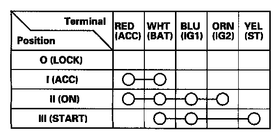 6. If the continuity checks do not agree with the table, replace the ignition switch.