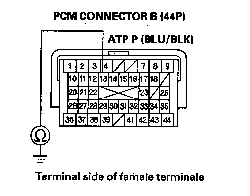 27. Check for continuity between PCM connector terminal B13 and body ground.