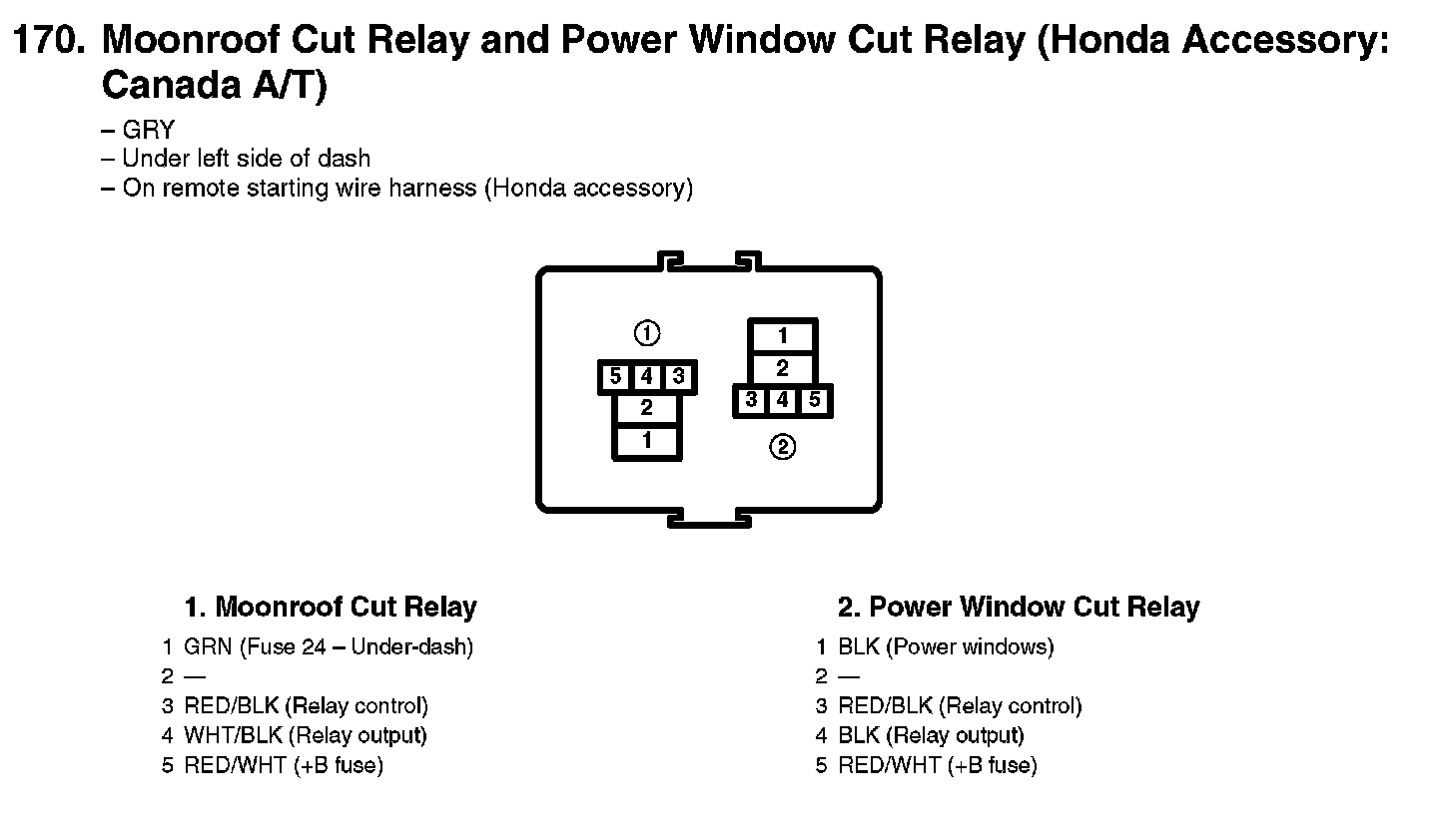 170. Moonroof Cut Relay And Power Window Cut Relay (Honda Accessory: Canada A/T):