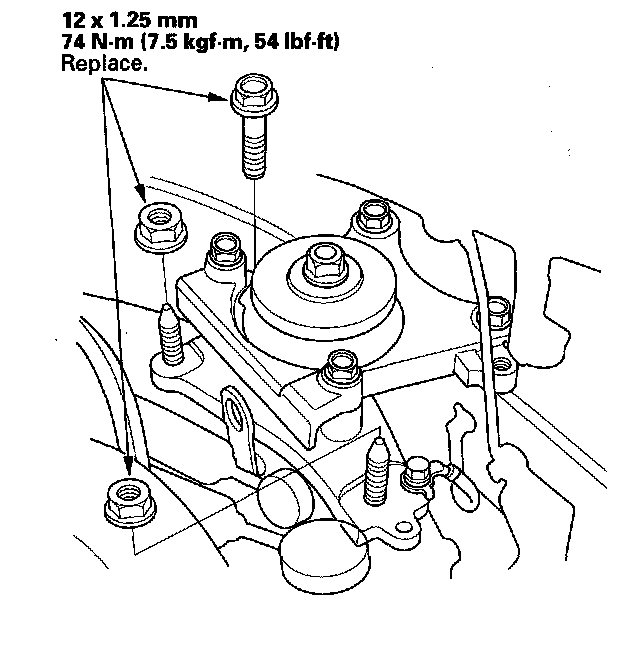 6. Tighten the new side engine mount bracket mounting bolt and nut.