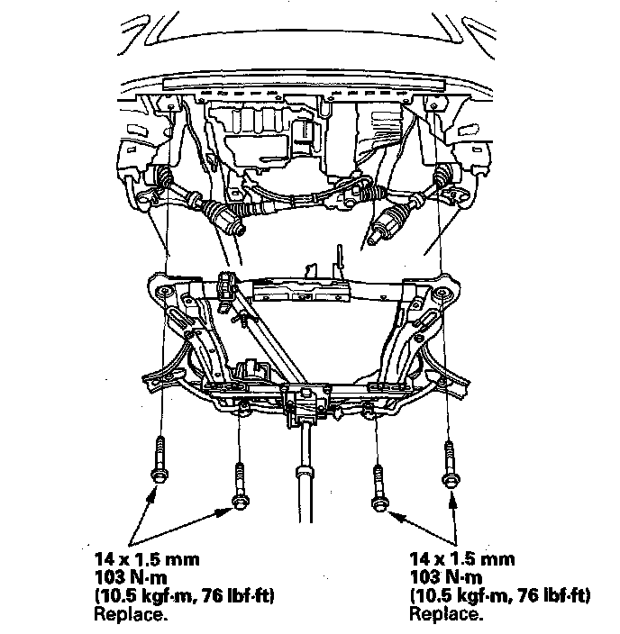 16. Tighten the new front subframe body mount bracket mounting bolts on both side.