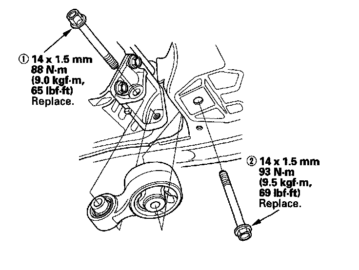 17. Install the lower torque rod, then tighten the new lower torque rod mounting bolts in the numbered sequence shown.
