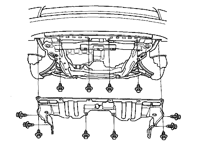 12. Line up the slots in the arms with the bolt holes on the corner of the jack base, and tighten the bolts, then lift the front subframe up to the body.