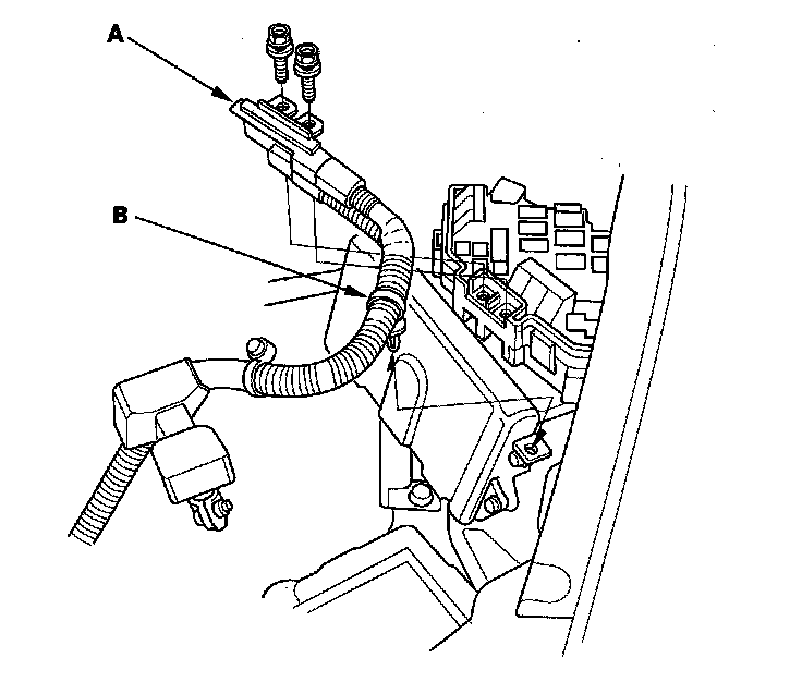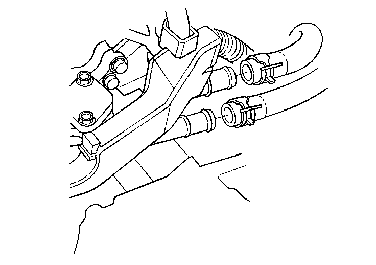 45. Install the evaporative emission (EVAP) canister hose (A) and brake booster vacuum hose (B).