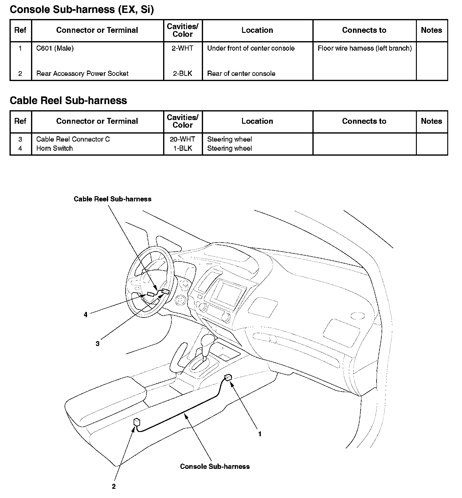 Console Sub-harness (EX, Si)/Cable Reel Sub-harness: