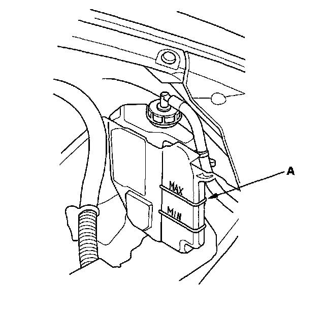 6. Fill the coolant reservoir to the MAX mark (A) with Honda Long Life Antifreeze/Coolant Type 2 (P/N 01-999-9001).