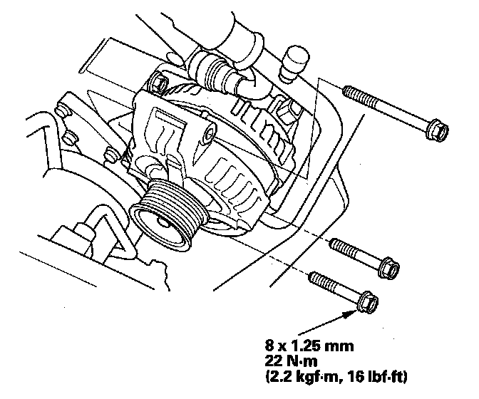 2. Tighten the three bolts securing the alternator.