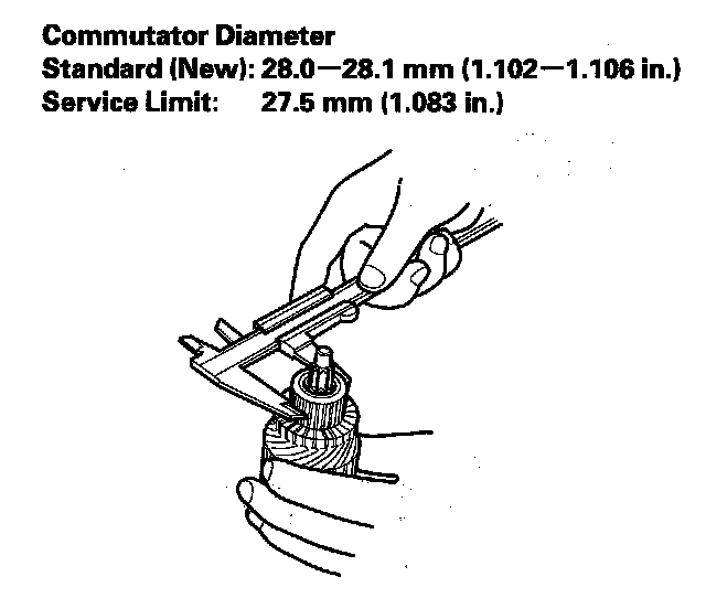 5. Check the commutator diameter. If the diameter is below the service limit, replace the armature.