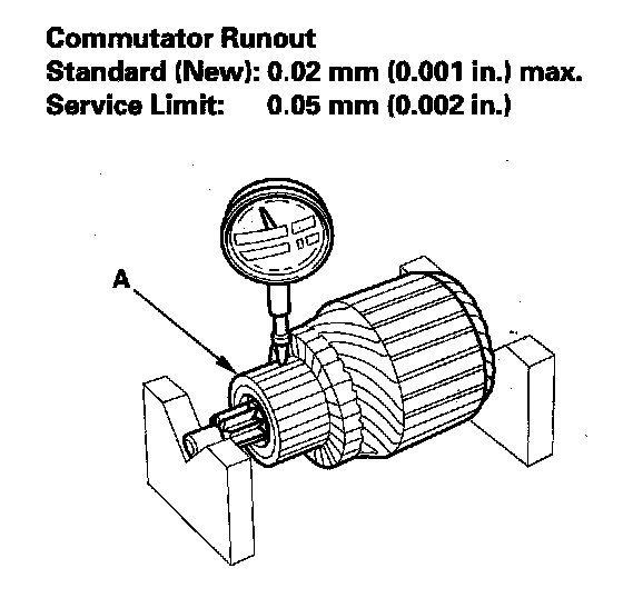 - If the commutator runout is not within the service limit, replace the armature.
