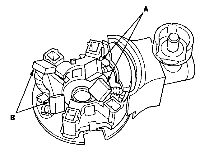 12. Check for continuity between the (+) brushes (A) and (-) brushes (B). If there is continuity, replace the brush holder assembly.