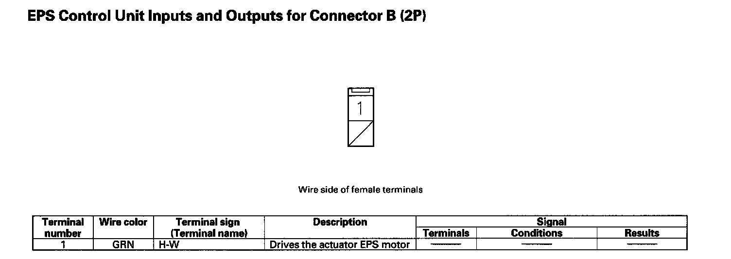 EPS Control Unit Inputs and Outputs for Connector B (2P):