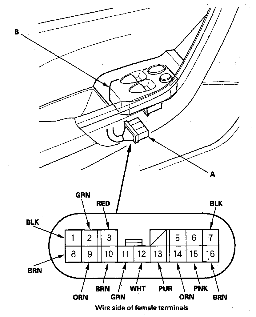 2. Disconnect the 16P connector (A) from the master switch (B).