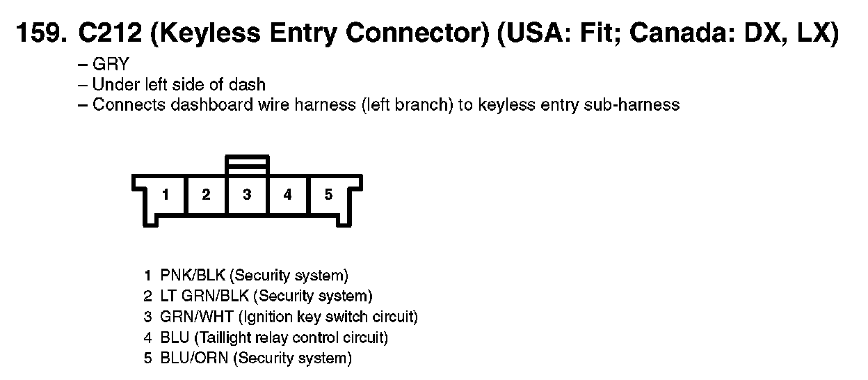 159. C212 (Keyless Entry Connector) (USA: Fit; Canada: DX, LX):