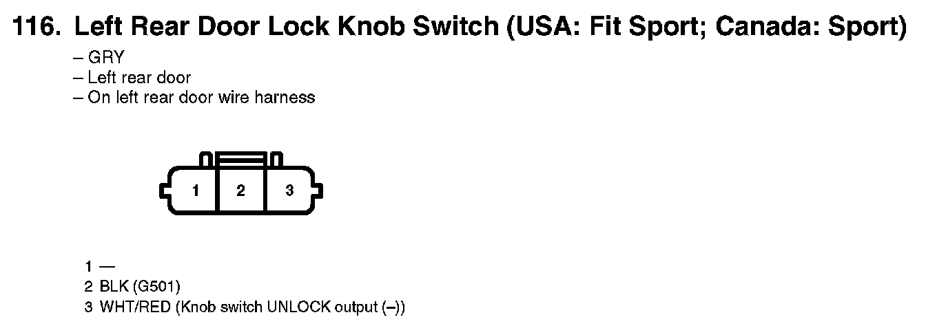 116. Left Rear Door Lock Knob Switch (USA: Fit Sport; Canada: Sport):