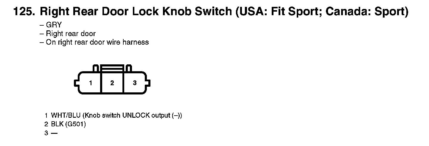 125. Right Rear Door Lock Knob Switch (USA: Fit Sport; Canada: Sport):