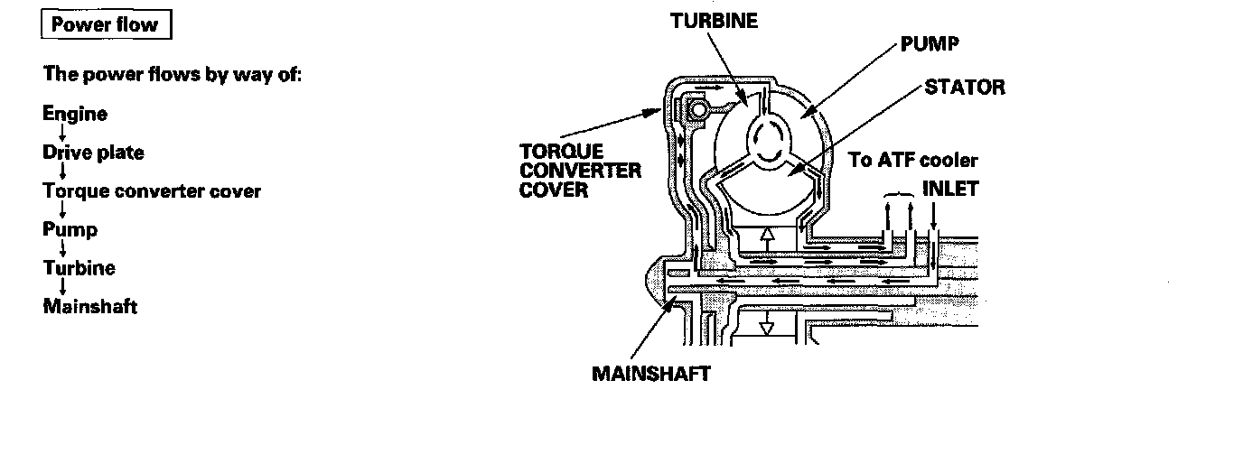 Fluid entered from the chamber between the torque converter cover and the torque converter clutch piston passes through the torque converter and goes out from the chambers between the turbine and the stator, and between the pump and the stator. As a result, the torque converter clutch piston moves away from the torque converter cover, and the torque converter clutch lock-up is released; torque converter clutch lock-up is OFF.