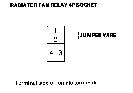 4. Connect the radiator fan relay 4P socket terminals No. 1 and No. 2 with a jumper wire.