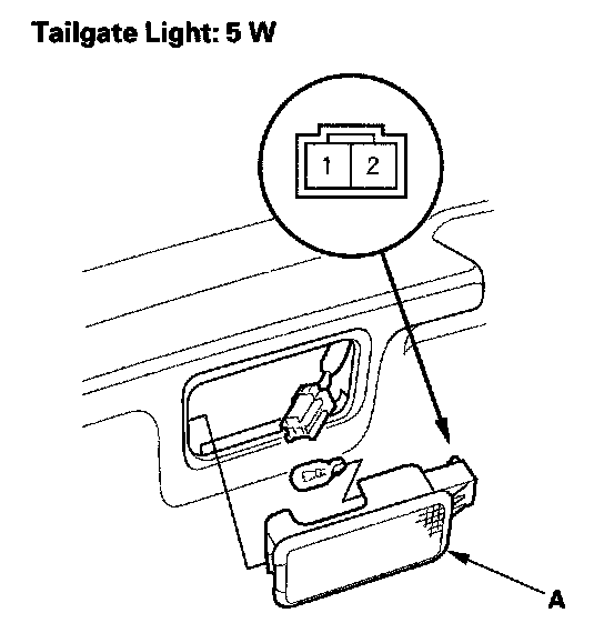 4. Check for continuity between the No. 1 (+) and No. 2 (-) terminals. There should be continuity. If there is no continuity, check the bulb. If the bulb is OK, replace the cargo area light assembly.