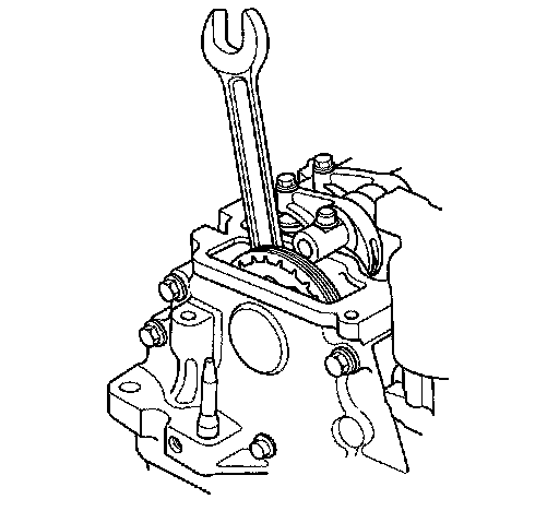6. Hold the camshaft with a 27 mm open-end wrench.