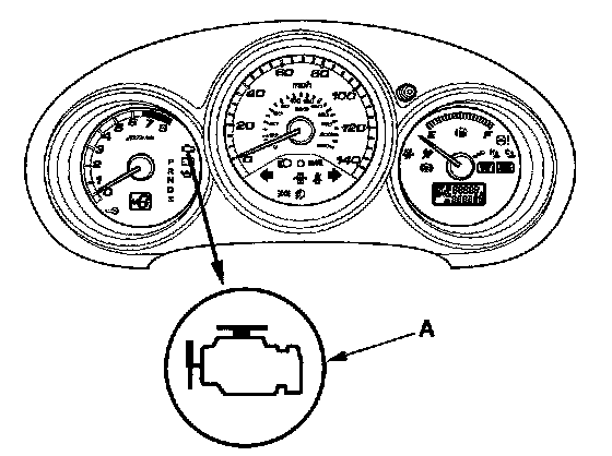 NOTE: If the ignition switch is turned ON (II), and the engine is not started, the MIL stays on for 15 - 20 seconds.