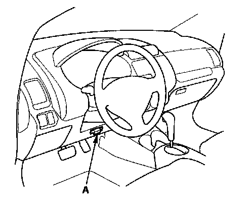 2. If the MIL stays on, connect the HDS to the data link connector (DLC) (A) located under the driver's side of the dashboard.