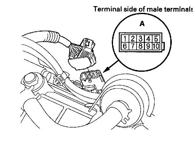 10. If there is no continuity between any terminals, remove the transmission range switch, and check the end of the selector control shaft (A).