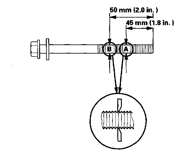 If either diameter is less than 8.6 mm (0.34 in.), replace the cylinder head bolt.