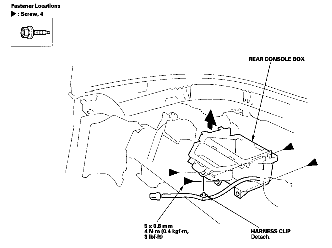 Rear Console Box ReplacementNOTE: Take care not to scratch the front seat and related parts.
