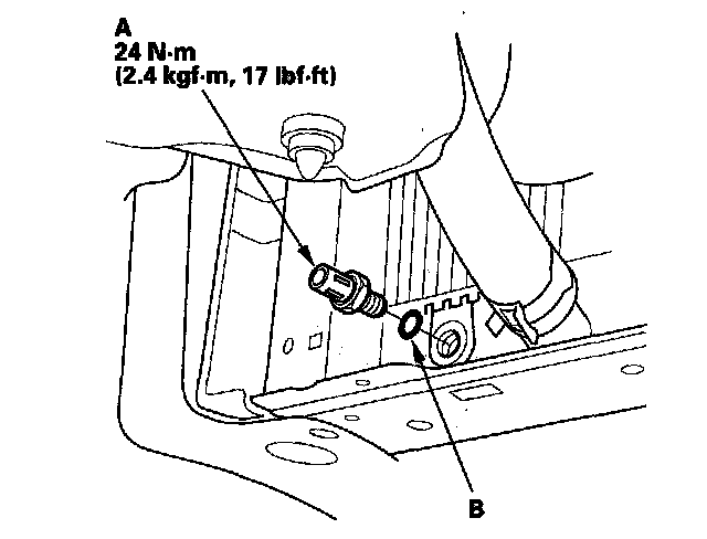3. Install the radiator fan switch with a new O-ring (B).