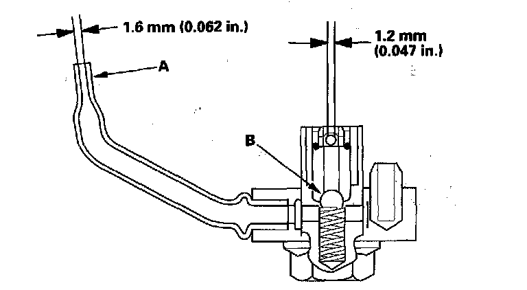 ^ Make sure the check ball (B) moves smoothly and has a stroke of approximately 4.0 mm (0.16 inch).