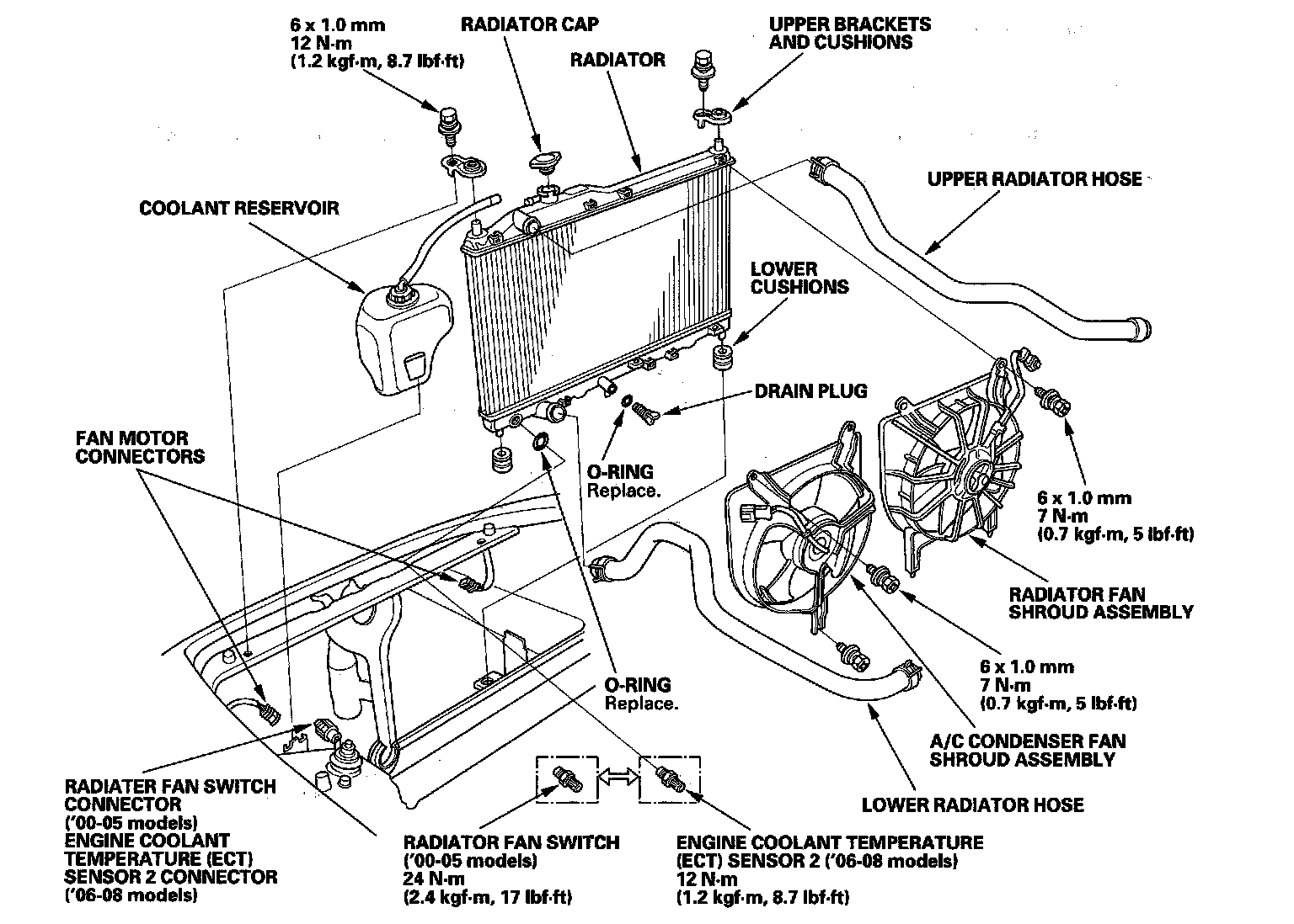 Radiator and Fan Replacement1. Drain the engine coolant.