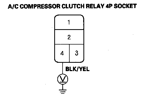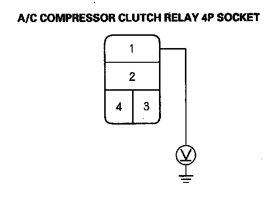 4. Measure the voltage between the No. 1 terminal of the A/C compressor clutch relay 4P socket and body ground.