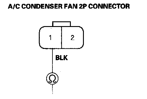 10. Check for continuity between the No. 2 terminal of the A/C condenser fan relay 4P socket and the No. 2 terminal of the A/C condenser fan 2P connector.