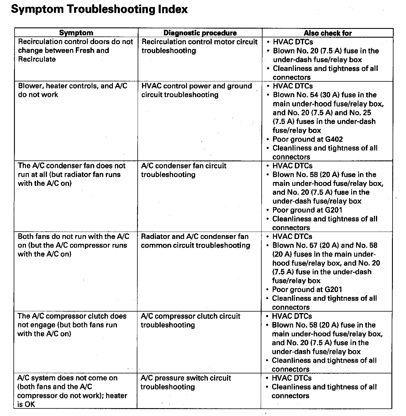 Symptom Troubleshooting Index: