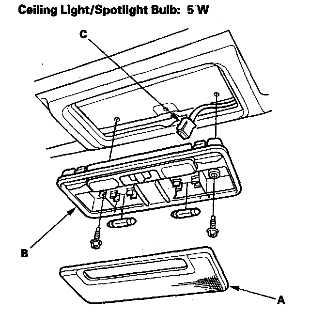 3. Remove the two screws and the ceiling/spotlight housing (B).