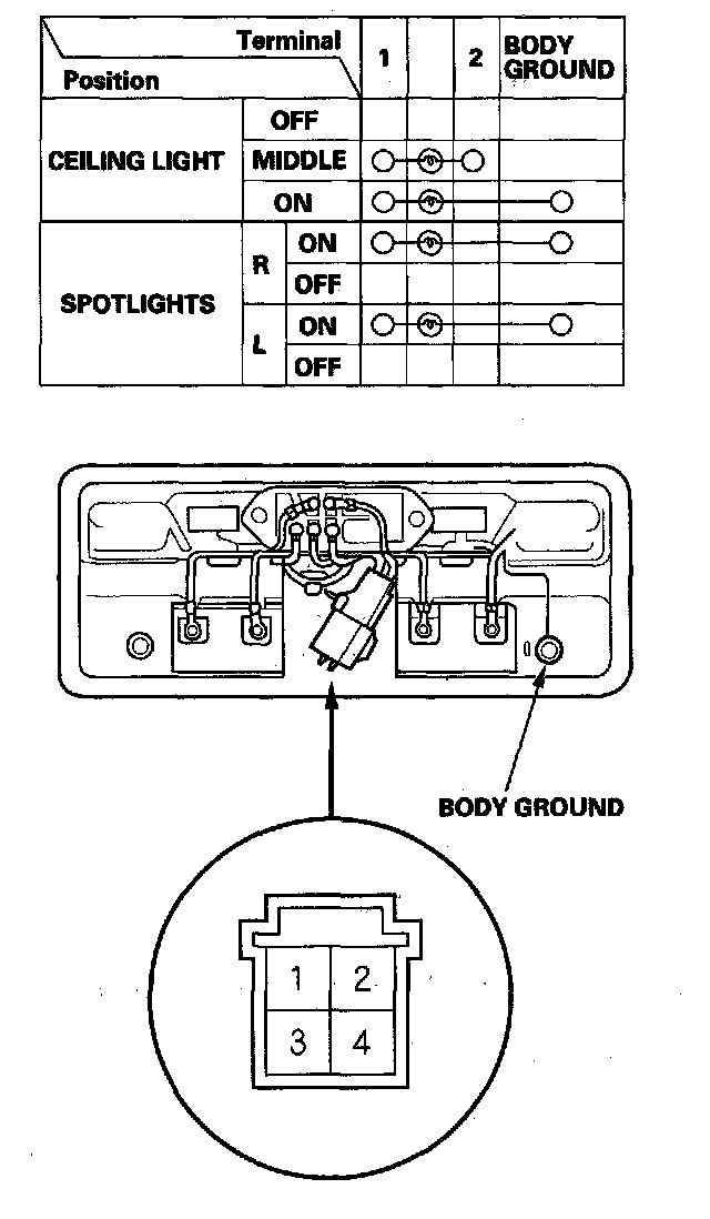 Ceiling Light/Spotlight Test1. Turn the ceiling/spotlights switch OFF.