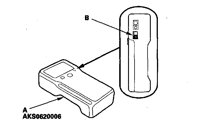 5. Follow HDS screen prompts to turn on the TPMS sensor initializer tool (A). Verify the power switch (B) is in the "Low" position.