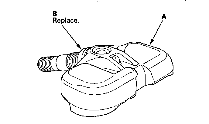 8. Remove the tire from the wheel, and remove the tire pressure sensor (A) and the grommet (B) (if removed) from inside the tire.
