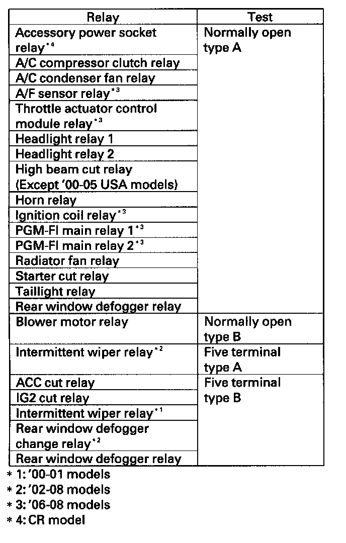 Power Relay TestUse this chart to identify the type of relay, then do the test listed for it.