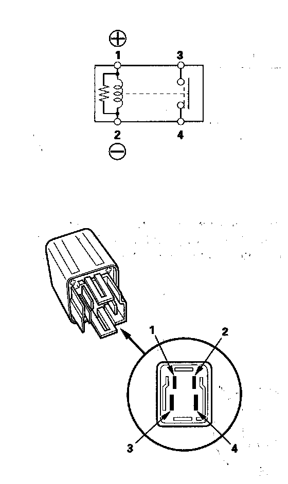 - There should be continuity between the No. 3 and No. 4 terminals when battery positive terminal is connected to the No. 1 terminal, and battery negative terminal is connected to the No. 2 terminal.