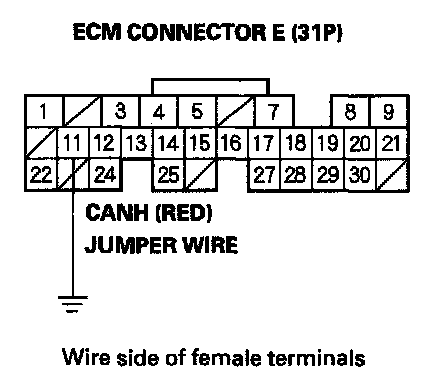 13. Connect ECM connector terminal E24 to body ground with a jumper wire.