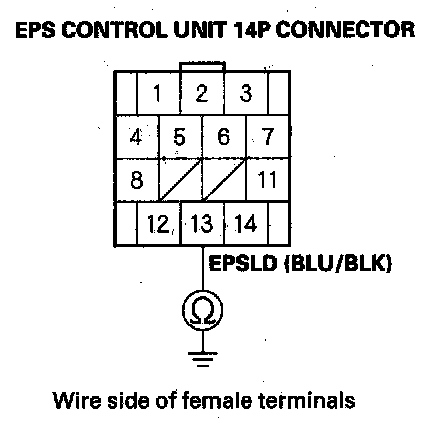 11. Check for continuity between EPS control unit 14P connector terminal No. 13 and body ground.