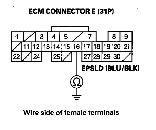 19. Check for continuity between ECM connector terminal E16 and body ground.
