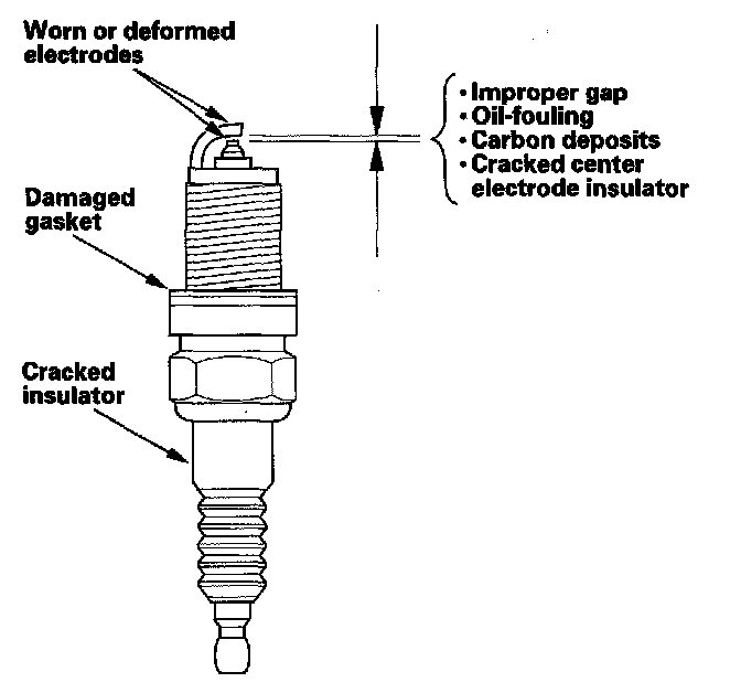 1. Remove the spark plugs and inspect the electrodes and ceramic insulator.