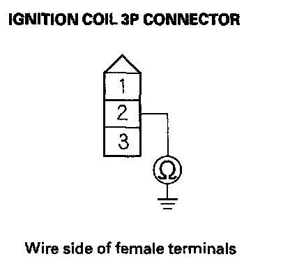 5. Check for continuity between each ignition coil 3P connector terminal No. 2 and the body ground.