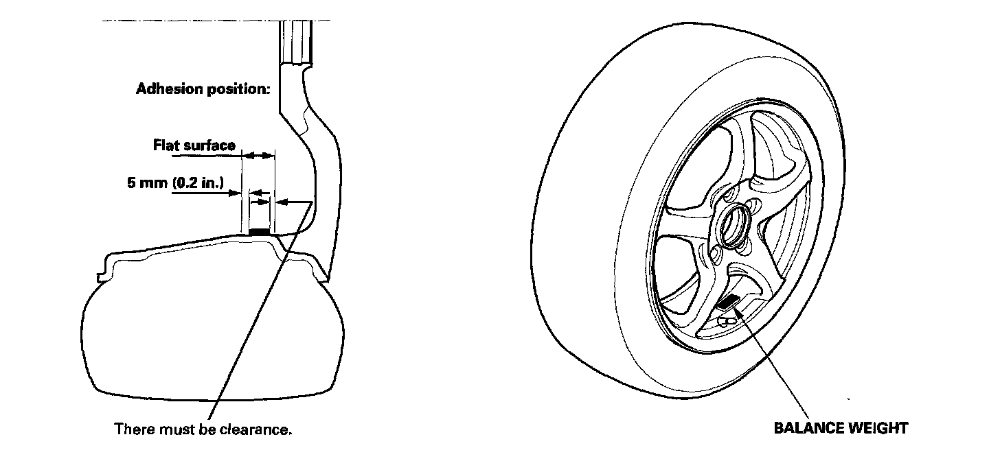 The wheels on this model are not designed to mount the balance weight on the outer side of the wheel. Instead, mount the self-adhesive balance weight on the inner side of the wheels. Note the following service tips and install the weights securely.