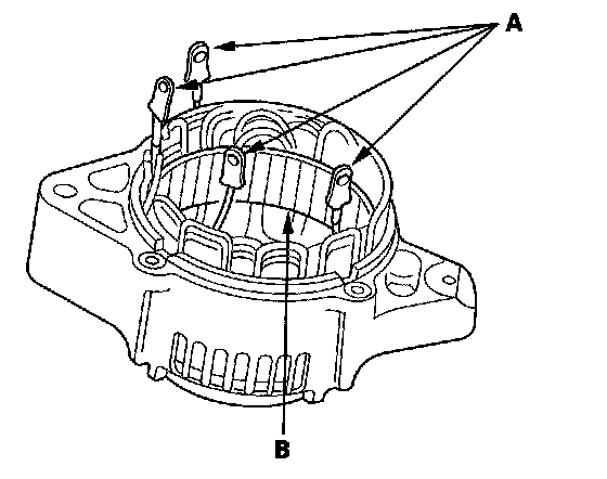 10. Remove the four insulators (A), rear housing (B), and washer (C).