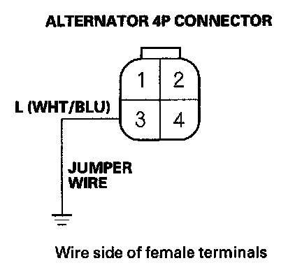 18. Connect alternator 4P connector terminal No. 3 and body ground with a jumper wire.